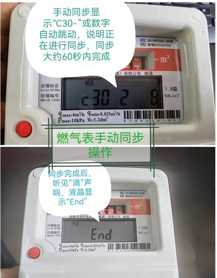 操作步驟如下:第一步,長按燃氣表上紅色功能鍵2-3秒,聽見“滴”聲后立馬就把手放開,看見燃氣表上顯示“CXX-XXX”,或液晶顯示屏上顯示的數字自動跳動,那說明您操作正確,燃氣表數據正在同步。如果液晶儀表上的數字沒有自動跳動,待液晶屏不顯示后重復以上操作。